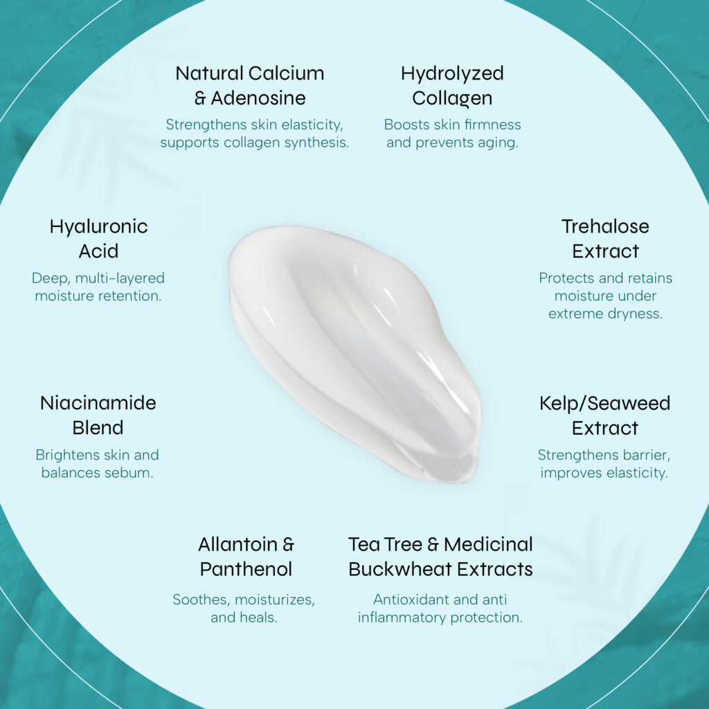 Helps the skin look smoother and more youthful with Adenosine, Hydrolyzed Collagen & 8 types of Hyaluronic Acid.